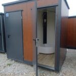 Questa cabina sanitaria doppia è realizzata con pannelli “Obornicka” (sandwich) spessi 6 cm, offrendo una soluzione compatta ma completa. L’unità è divisa in due cabine separate: una equipaggiata con WC e lavabo, l’altra con una cabina doccia. Le installazioni idriche, fognarie ed elettriche (230V) sono già completate. Uno scaldacqua istantaneo al rubinetto garantisce acqua calda immediata. Ideale per un rapido impiego in cantieri, giardini o eventi, è una soluzione igienica e funzionale pronta all’uso.
