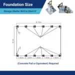 - Dimensioni Esterne (L x P x H): 20’x30’x12′ (6,1 m x 9,14 m x 3,66 m)