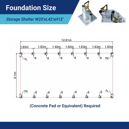 - Dimensioni Esterne (L x P x H): 20’x42’x12′ (6,1 m x 12,8 m x 3,66 m)