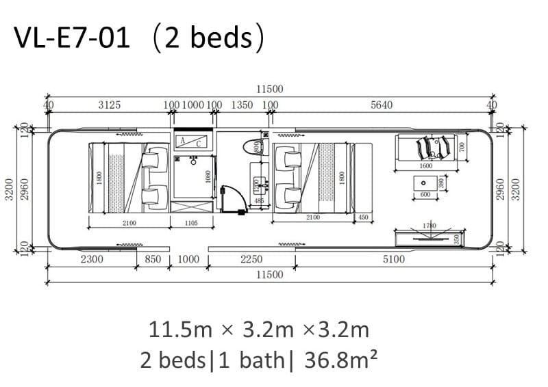 Capsule House E7, 36.8mq-Design Compatto, 2 Letti, Massima Efficienza
