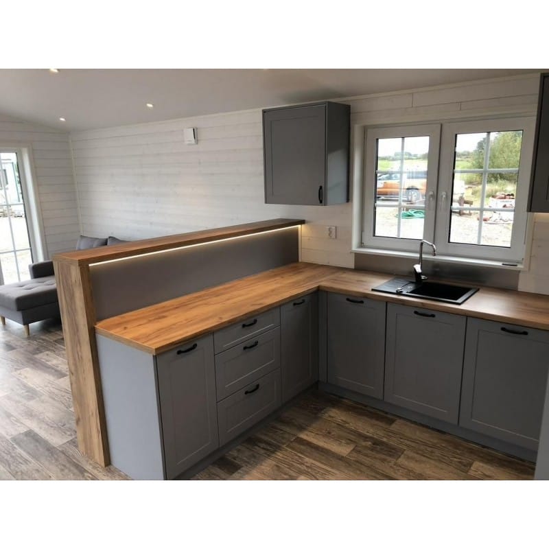 Il Container Abitabile T2 di LOLO CONTAINERè una dimora spaziosa e moderna, progettata per offrire un comfort abitativo di alto livello. Con una superficie di 48mq, questo container abitativo dispone di due camere da letto, un’ampia zona giorno e una cucina completamente attrezzata con elettrodomestici Bosch di alta gamma. Il bagno è rifinito con cura e dotato di tutti i comfort, incluso il riscaldamento a pavimento. Gli interni, luminosi e accoglienti, sono impreziositi da dettagli di design come l’illuminazione a LED integrata e le porte e i cassetti della cucina con chiusura ammortizzata. Questo container abitativo è la scelta perfetta per chi desidera una soluzione abitativa moderna, funzionale e dal design ricercato.