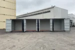 Contenedor High Cube nuevo de 40 pies (12m) «one-trip» con 4 puertas de acceso en el lateral derecho. Acero Corten, suelo contrachapado marino, cajas de seguridad. Ideal para carga/descarga lateral fácil.