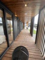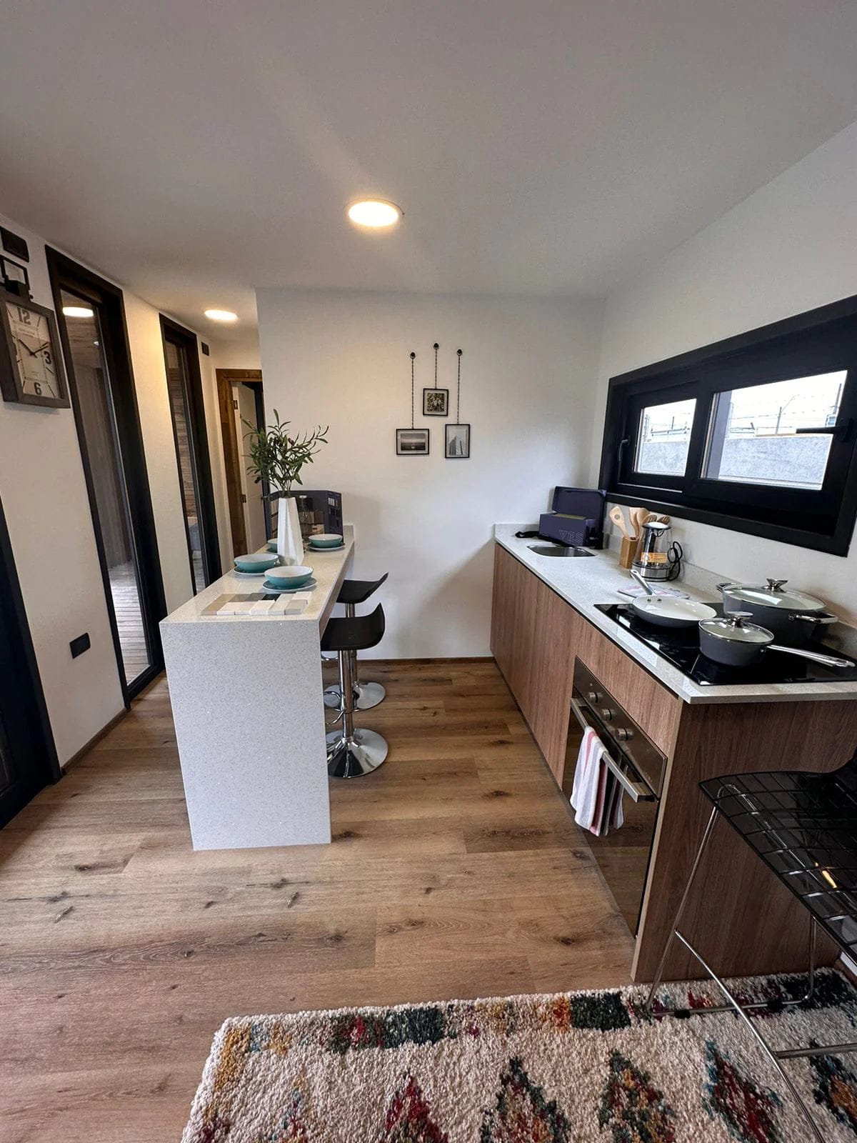 • Design Moderno e Materiali di Qualità: Le finiture come il fibrocemento nero, gli infissi in PVC e il pavimento vinilico creano un look contemporaneo e di pregio.