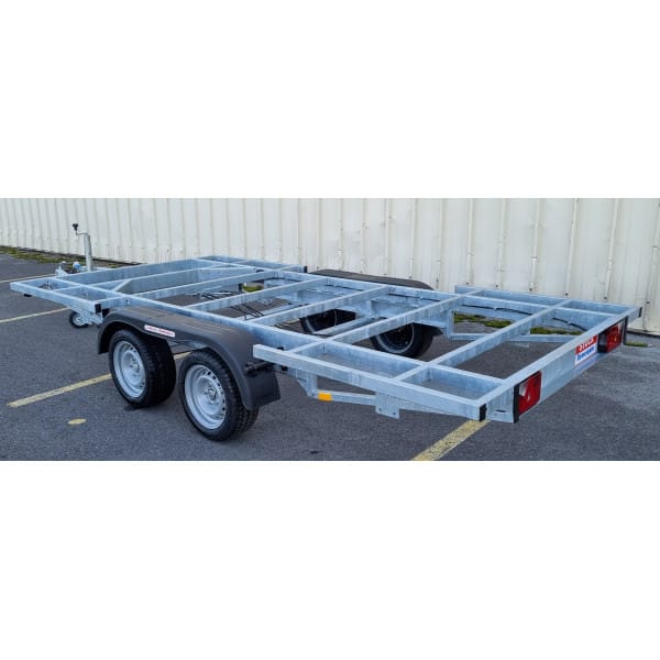 La base ideale per piccoli progetti: un robusto rimorchio da 4m con timone smontabile e doppio asse per la massima stabilità. Qualità e sicurezza in un formato compatto.