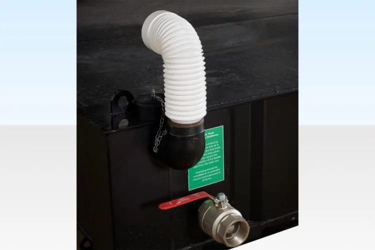 - Facilità di Scarico: Due punti di scarico angolari con coperchi inclusi per una gestione semplice e sicura.