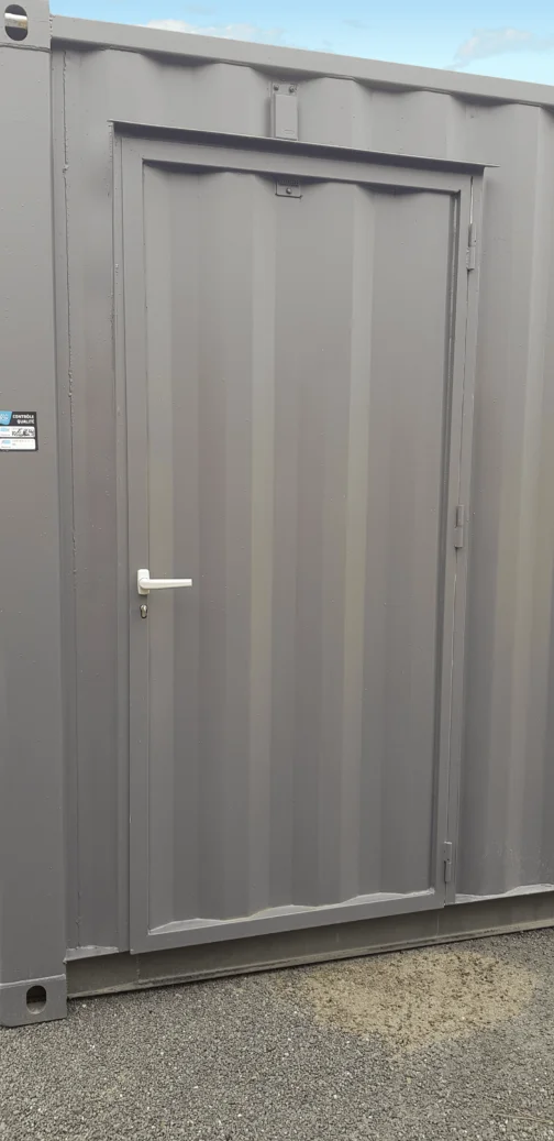Con le porte marittime originali, una porta di servizio aggiuntiva e una serranda elettrica, questo modulo assicura massima accessibilità, robustezza e funzionalità, adattandosi perfettamente a contesti interni ed esterni.