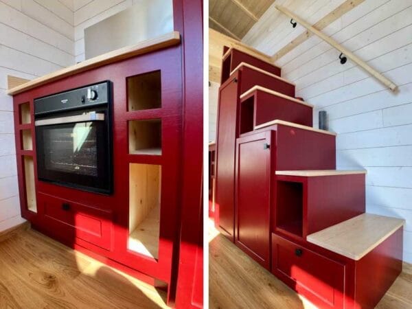 Questa Tiny House rappresenta la soluzione ideale per chi cerca un’esperienza abitativa all’insegna dell’autonomia e della sostenibilità. Progettata per essere 100% autosufficiente in acqua ed elettricità, può ospitare fino a 4 persone grazie ai suoi due mezzanini che separano le zone notte, garantendo privacy e comfort. Ispirata al modello “La Familiale”, questa Tiny House offre un design intelligente che massimizza lo spazio, con un accogliente salotto riscaldato da una stufa a gas, una cucina completamente attrezzata e un bagno funzionale. Vivere in questa Tiny House significa abbracciare uno stile di vita minimalista, rispettoso dell’ambiente e indipendente dalle tradizionali reti di fornitura.